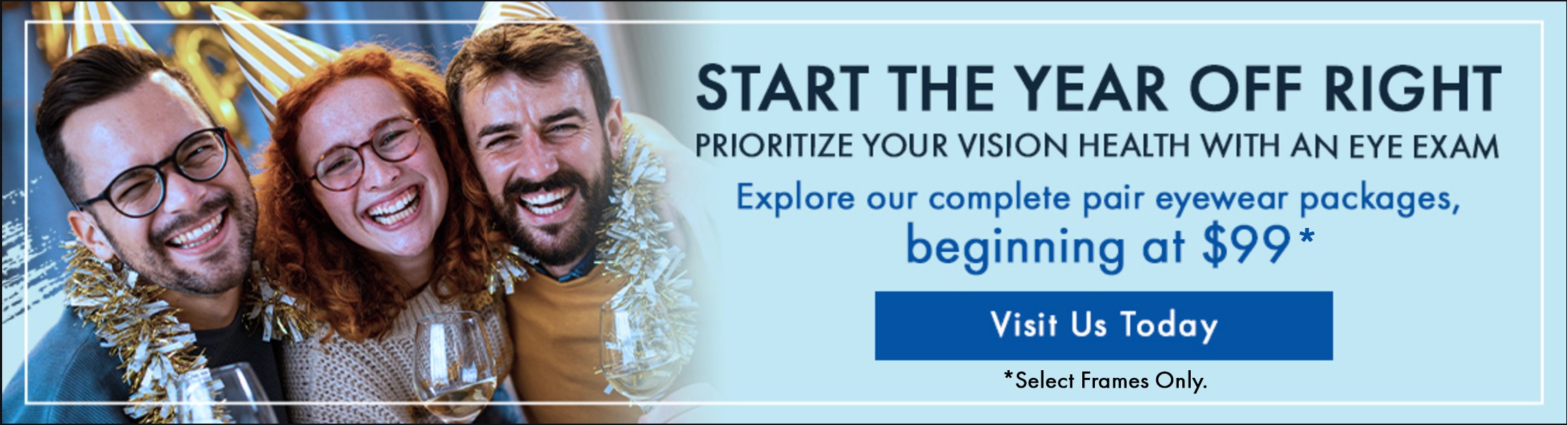 Book your next eye exam or browse through our collection of eyeglasses and sunglasses.